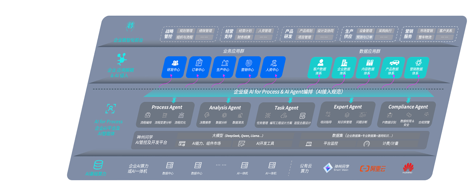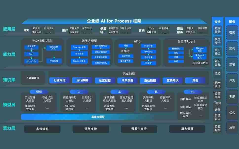 意昂2问学智车解决方案是一套基于AI技术的汽车行业智能化系统,,,覆盖从底层算力到顶层AI应用的全栈方案。。方案由算力层、、模型层和应用层组成:算力层,,,方案支持多种一体机配置,,具备云端灵活部署、、、、多云适配以及动态优化计算资源的能力;模型层,,,意昂2问学平台版提供了企业级AI应用一站式构建与管理平台,,,支持基于后训练强化技术的汽车企业专属模型的训练、、、评测和运营;应用层,,,意昂2问学DeepSeek版提供包括超级员工、、、、智能招采、、智能营销、、、、智能客服、、、AI for BI等一系列解决方案,,可助力汽车行业实现数字化转型,,让管理更智能、、、、响应更敏捷。。。